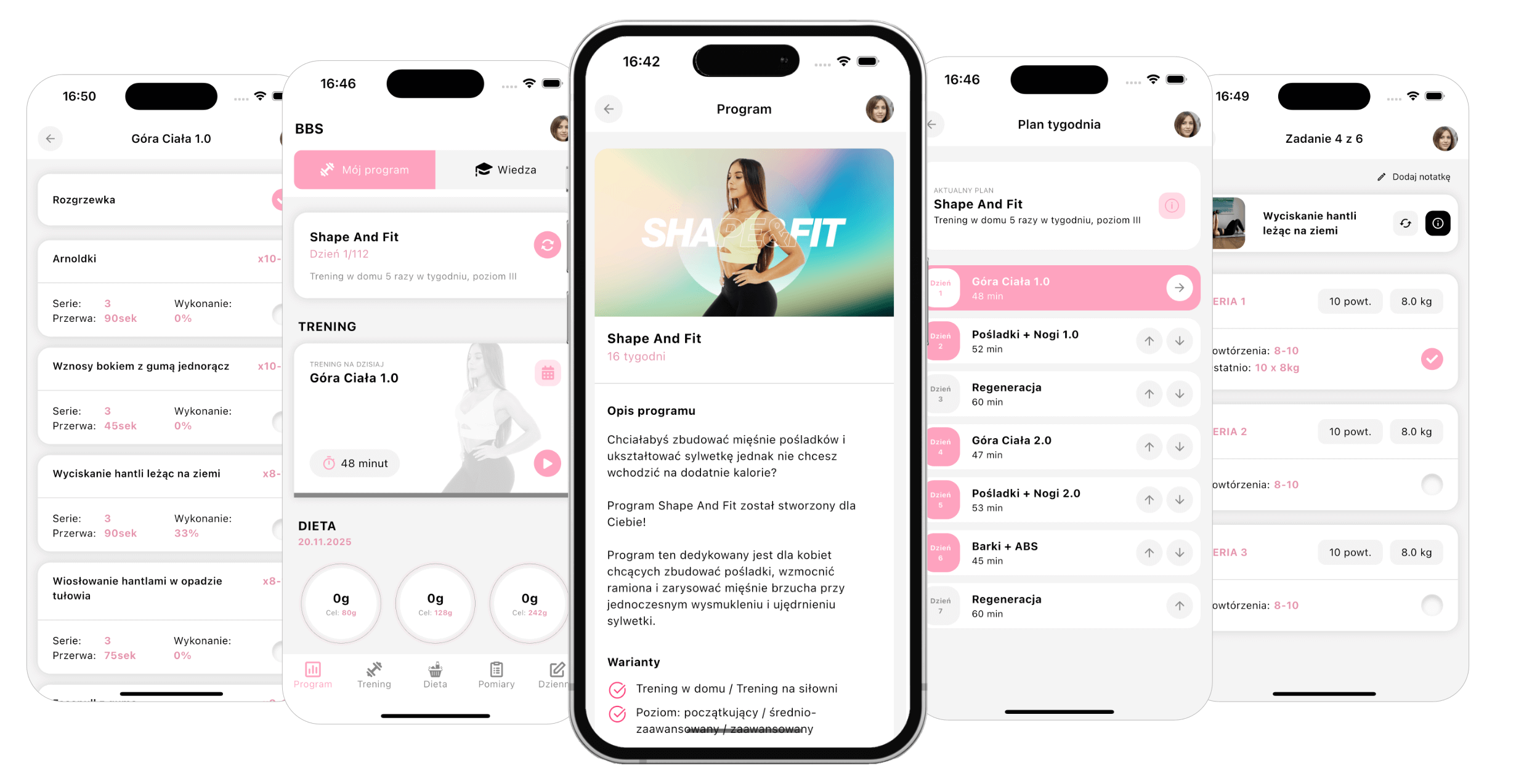 Shape And Fit to 16 tygodni precyzyjnie ułożonego planu, który krok po kroku prowadzi Cię przez proces rekompozycji. Każdy trening ma swoje miejsce i cel, dzięki czemu pracujesz nad mięśniami, zachowując smukłość i lekkość sylwetki.